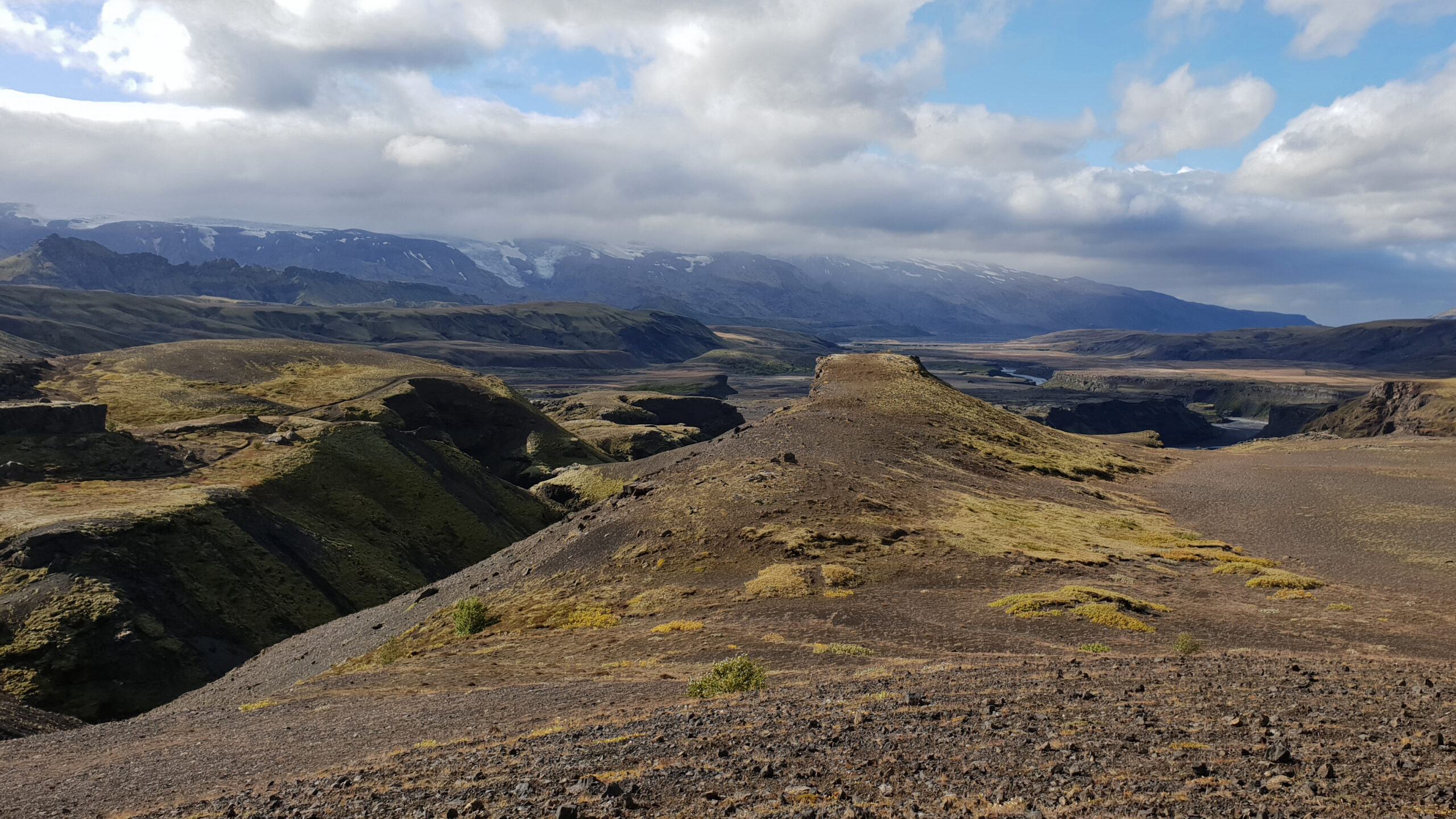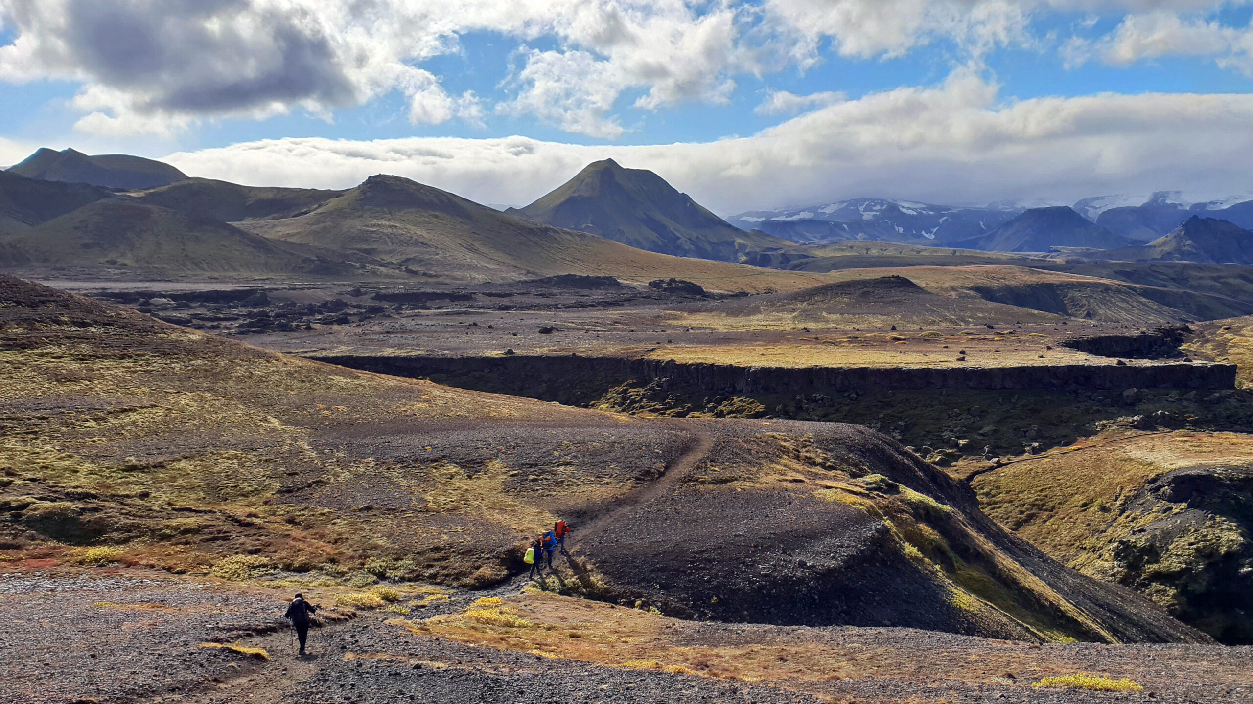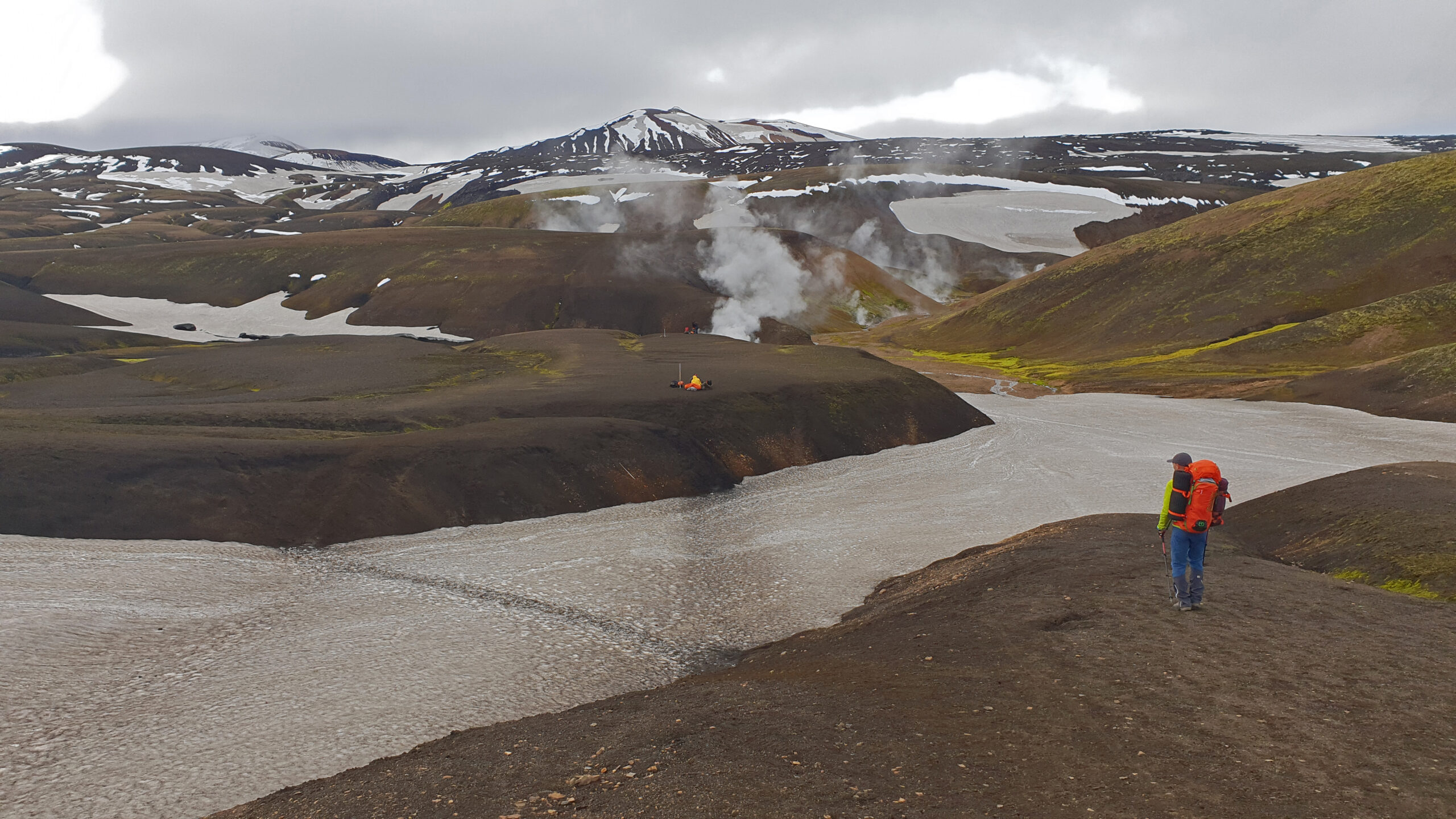 Nuestro recorrido está dividido en dos partes: en la primera vamos a realizar el trekking más famoso de Islandia y considerado uno de los más bonitos y singulares de Europa. Caminaremos unos 55 km durante tres jornadas hasta llegar al imponente valle glaciar de Þórsmörk. En el camino cruzaremos campos geotermales, montañas de colores, altiplanos desérticos, ríos y verdes cañones. En el último tramo salvaremos los 25 km que nos separan de la costa a través del altivo paso de Fimmvörðuháls, muy cerca de los glaciares, y con un espectacular descenso hasta la cascada de Skógafoss.