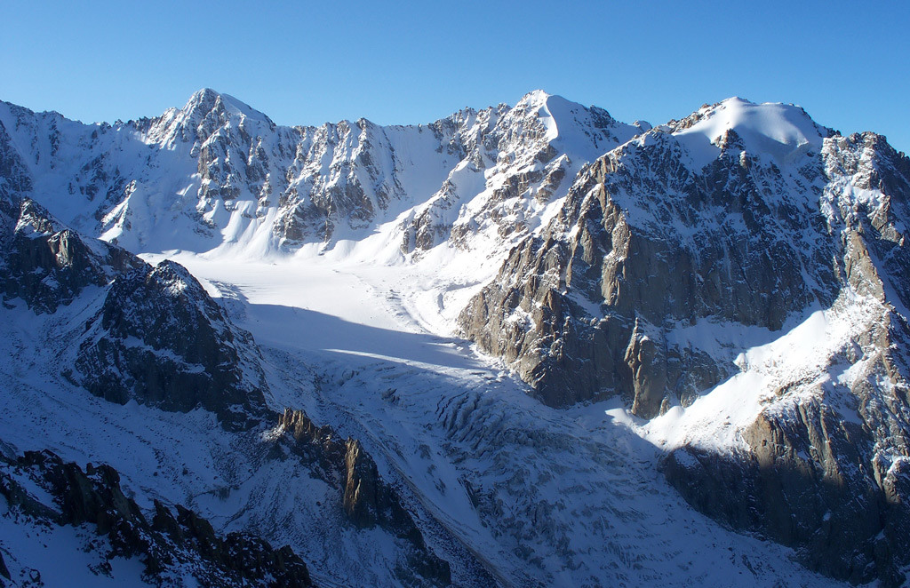 Empezaremos realizando un trekking en el macizo de Terskey Ala Too, que constituye una de las estribaciones secundarias del Gran Tien Shan. Aquí encontraremos hermosos valles, poblados de frondosos bosques de coníferas y lagos de aguas turquesas. Aunque las cumbres de este macizo no son extraordinariamente altas, superan apenas los 5000 metros, si que presentan una extensa cobertura glaciar y paredes y vertientes de grandes dimensiones. En la segunda parte del viaje, exploraremos el macizo del Ala Archa, y ascenderemos a una de sus cumbres principales, el pico Uchitel (4.540 m), desde donde tendremos unas hermosas vistas panorámicas hacia los glaciares y las cumbres más altas del macizo.